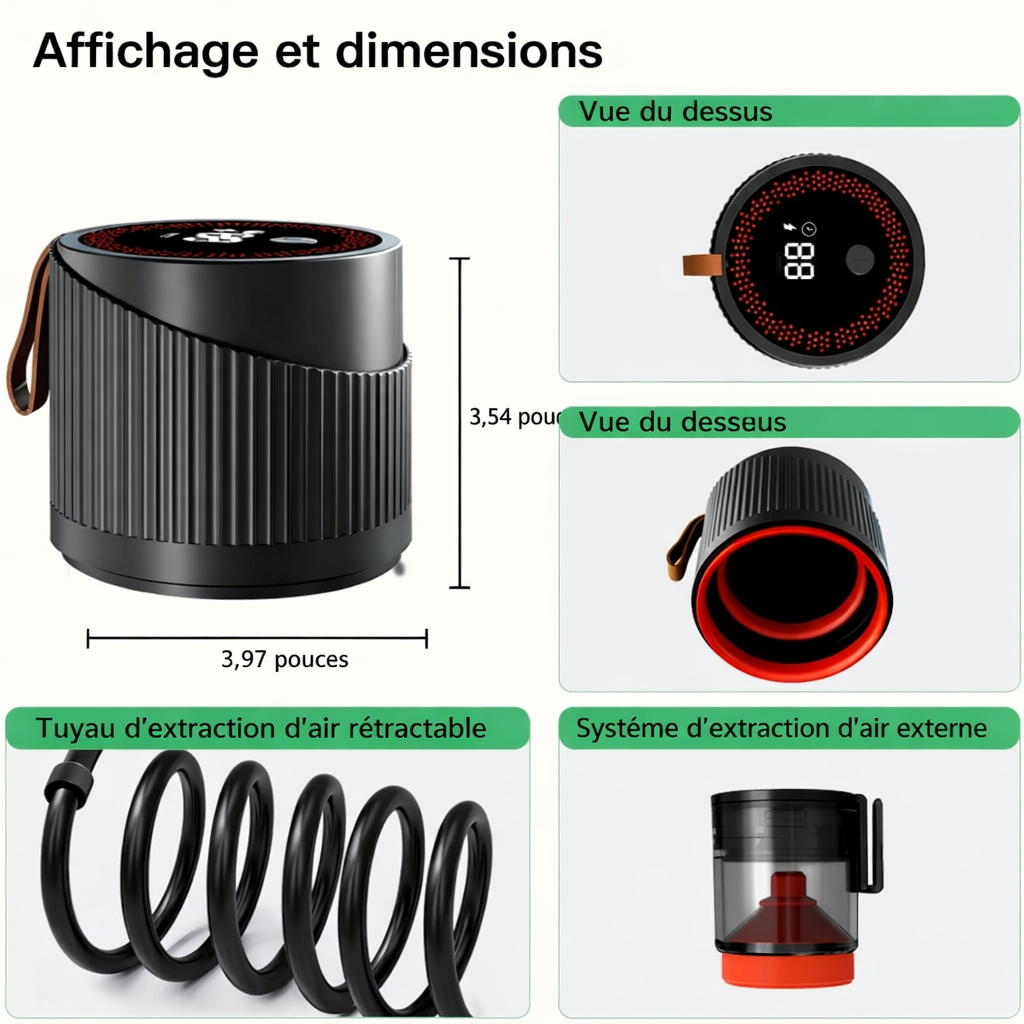 - Compatibilité tout-en-un : Fonctionne avec les bocaux Mason (ouverture standard et large), les récipients, bouteille de vin et les sacs sous vide pour s’adapter à tous vos besoins de conservation.
